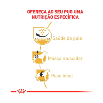Manutenção da Massa Muscular: Os Pugs adultos precisam de um suporte proteico que auxilie na preservação de sua musculatura, mantendo-os ativos e saudáveis. A Royal Canin para Pugs Adultos oferece um nível ideal de proteínas que ajuda a sustentar a massa muscular sem sobrecarregar o organismo do pet
