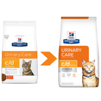 A Ração Seca Hill's Prescription Diet C/D Multicare Cuidado Urinário Para Gatos Adultos Frango é um alimento coadjuvante seco para gatos adultos, especificamente formulado para suporte nutricional nos quadros de ocorrência e recorrência de urólitos de estruvita (auxílio à dissolução) e oxalato de cálcio, manejo dietético da cistite idiopática e inflamação das vias urinárias inferiores dos felinos (DITUIF) com níveis controlados de Cálcio, Magnésio e Fósforo pH urinário favorável, antioxidantes e ácidos graxos ômega 3 e contribui para dissolução de cálculos de estruvita e combate as condições urinárias desfavoráveis à formação de urólitos de estruvita e oxalato de cálcio.