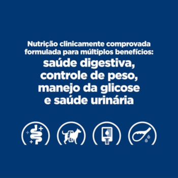 Os produtos Hill's Prescription Diet fornecem uma nutrição coadjuvante clinicamente testada para uma variedade de condições específicas para cada pet. Cada produto Hill's Prescription Diet é formulado baseado em ciência e são nutricionalmente inovadores para ajudar seu pet a viver em sua melhor forma. Sendo a alimentação coadjuvante para pet número 1 em Recomendação Veterinária nos EUA, a Hill's se orgulha por oferecer nutrição que está um passo à frente não importa a condição que seu pet enfrenta.