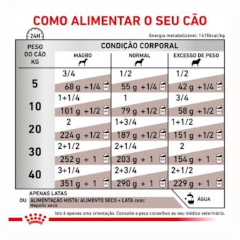 - Indicação: Alimento coadjuvante indicado para cães adultos com doenças hepáticas;