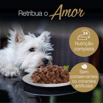 - Alimento úmido completo: indicado para cães de todos os portes e idades.