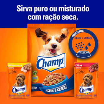 Ração Úmida Sachê Champ Cães Adultos 85gr sabor Caseiro de Frango