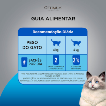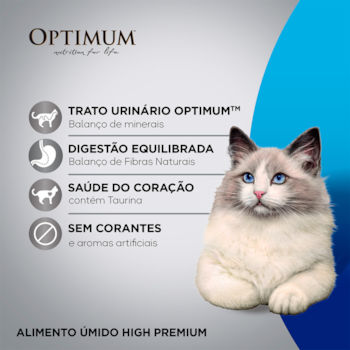 O compromisso da Optimum em oferecer um alimento de alta qualidade é evidente na excelente absorção de nutrientes que este sachê proporciona. Cada porção é formulada para garantir que seu gato aproveite ao máximo os nutrientes disponíveis, promovendo uma vida saudável e ativa. A combinação de ingredientes selecionados e a presença de fibras naturais contribuem para o bem-estar geral do seu gato.