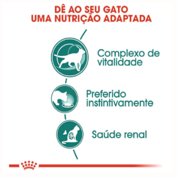 Com o tempo, é comum que as preferências dos gatos mudem, e alimentos que antes eram agradáveis podem se tornar menos atraentes. Pensando nisso, a Royal Canin desenvolveu essa ração úmida com um perfil nutricional que corresponde ao instinto natural dos gatos, garantindo que o alimento seja aceito e apreciado até pelos paladares mais exigentes. A textura úmida e o sabor refinado tornam o sachê uma opção atraente, ajudando a evitar a recusa alimentar, especialmente importante em gatos mais velhos.
