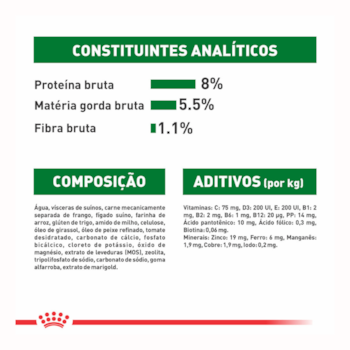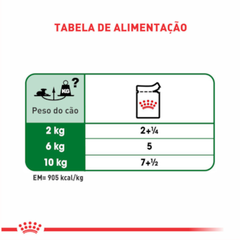 Alimento completo úmido para cães maduros de porte pequeno (peso até 10 kg) – A partir de 12 anos de idade. A Ração Royal Canin Sachê Size Health Nutrition Puppy Wet para Cães Adultos Raças Pequenas a partir de 12 Anos de Idade foi elaborada especialmente para os pets em fase de envelhecimento. Desenvolvida com antioxidantes e vitaminas específicas neutraliza os radicais livres, proporcionando vitalidade para a pele e os pelos do seu amigão.