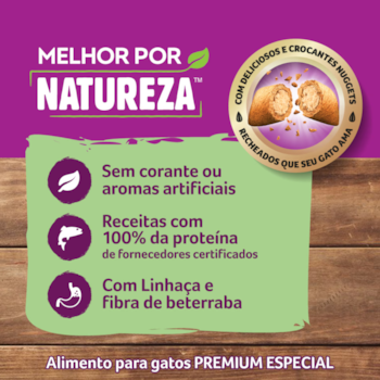 - Com Linhaça, fonte natural de ômega 3 para saúde do seu gato;