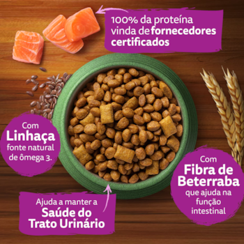 - Com Linhaça, fonte natural de ômega 3 para saúde do seu gato;