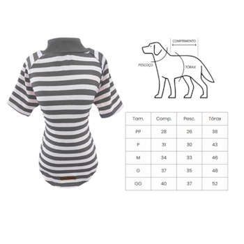 Roupinha Blusa Listra com Mangas Cinza Fábrica Pet G para Cães