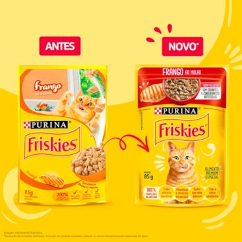 Purina Friskies frango ao molho é um alimento úmido completo e balanceado destinado a gatos acima de 12 meses. Com pedaços suculentos de atum em um molho irresistível, o sachê da Friskies é um alimento úmido que os gatos adoram. Além de ser saboroso, ele também é: