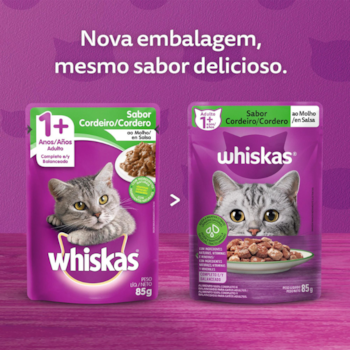 Ração Úmida Sachê Whiskas para Gatos Adultos 85g Cordeiro ao Molho