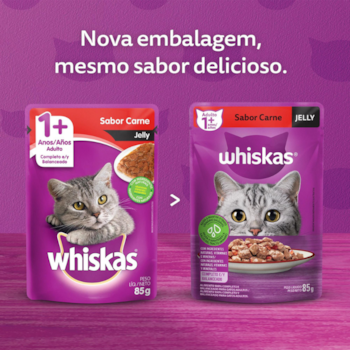 Sachê Whiskas para Gatos Adultos Jelly 85g Carne
