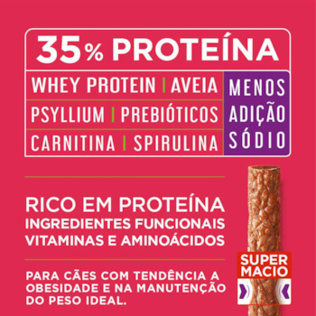O Stick Spin Pet Fit Light Amora, Franboeza e Morango é um petisco que colabora para que pets mantenham a musculatura magra e saudável, contribuindo também para pets com tendência a obesidade.