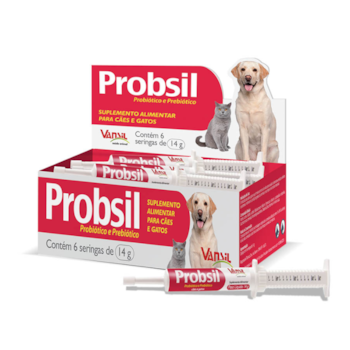 Probsil é um suplemento alimentar especialmente desenvolvido para cães e gatos que se encontram em situações de debilidade, estresse ou que necessitam de suporte na recomposição da microbiota intestinal.