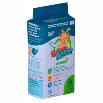 O Tapete Higiênico Super Secão Green é o primeiro do Brasil feito com plástico de cana-de-açúcar. Além de ser um produto pioneiro e ecologicamente correto, o Tapete Higiênico Super secão Green conta com bordas que evitam o vazamento, mantendo as patinhas do seu pet secas. Proporcionando máxima absorção, o Tapete Green conta com fitas adesivas que garantem uma melhor fixação e atrativo canina para auxiliar na adaptação do pet.
